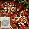 The Folded Ribbon Ornament Template tool cleverly creates a method of equidistant measurement where the fabric is placed in a fixed position to complete a delicate hexagonal star piece.