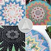 This custom-designed template makes creating the centers of your Kaleidoscope projects so easy! Simply trace, cut, and sew! The additional lines at the bottom of the template help with exact placement, making it easy to fussy cut multiple, identical triangles!