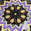 Create a darling centerpiece for your table with the Kaleidoscope Folded Star Table Topper . The center "kaleidoscope" features a ring of jolly Santas, surrounded by layers of prairie points in coordinating festive fabrics. You will have fun making and displaying this eye-catching table topper in your home. Finishes to approximately 17” in diameter.